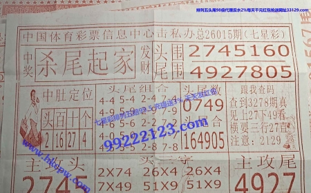 第26015期七星彩开奖结果:0199 115【体
